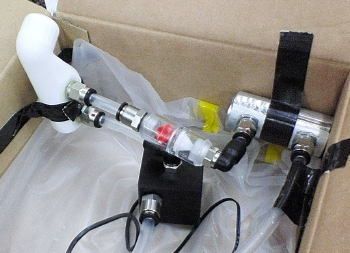 水冷LEDライトに通水して点灯テストを行った。