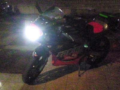 日産純正品らしい。 やはり、後付用と違い細かい加工がいくつか必要。 バラスト等は適当にカウルの奥に詰め込む。 点灯!まぶしい。 かなり明るくなったが、光の漏れがあちこちある。 バラストの発光点がリフレクターの設計発光点から多少ずれてるからかも。 35Wなので電力不足を心配しつつ1週間ほど様子見。 〈追記〉 やはり電力がつらいので、HIDを点灯するのは高速走行時のみ。 ハロゲンランプは供給電圧によって明るさが変化することで消費電力の調整になっているが、HIDは安定放電を持続するため常に一定の電力を消費するので、アイドリング中はバッテリーの電力を使ってしまう。 信号待ちで点けたままにしていると不規則に点滅しはじめる。